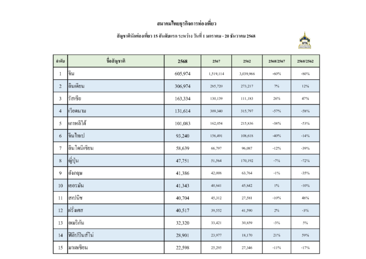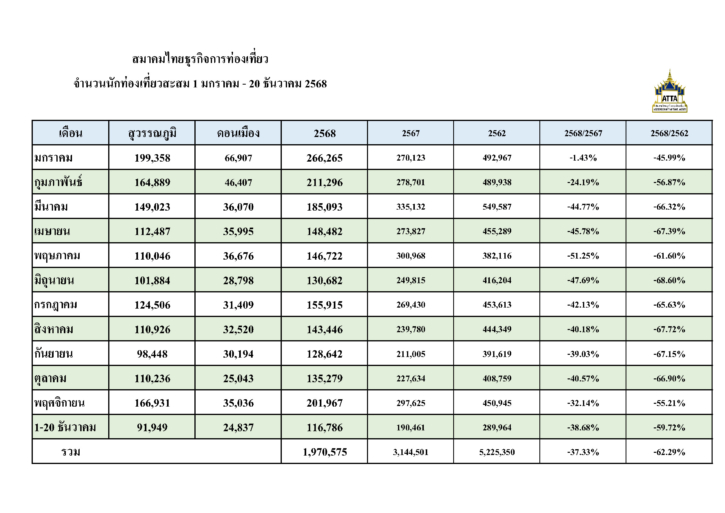 > STATISTICS INTERNATIONAL TOURISTS ARRIVING IN THAILAND AS OF 20 DECEMBER 2025